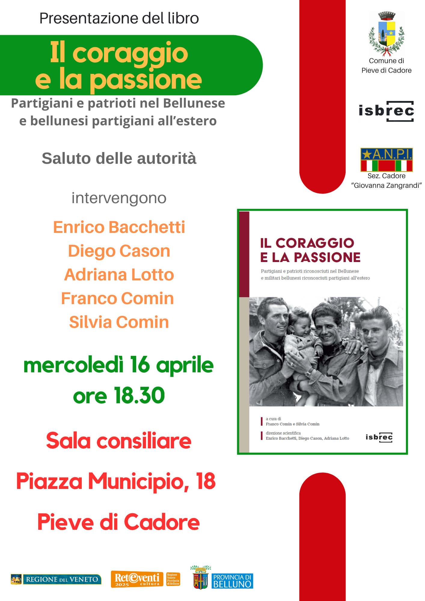 Alle ore 12.00 a Sossai avrà inizio la Festa della Liberazione organizzata da Cgil Belluno, Anpi Belluno, Libera, Rete degli Studenti Medi e Coordinamento Pace e Disarmo e sostenuta, tra gli altri, anche dall’Isbrec. Il programma prevede alle 12.30 l’apertura di ristorante e chiosco. Alle 15.00 si terrà il dibattito Crisi della democrazia e partecipazione: contro le guerre e il riarmo che vedrà la partecipazione di Felice Casson. A seguire, dalle 16.30 ci sarà uno spettacolo musicale. Nel corso della festa sarà presente un infopoint riguardo la tornata referendaria dell’8 e 9 giugno 2025. La cittadinanza è invitata a partecipare.