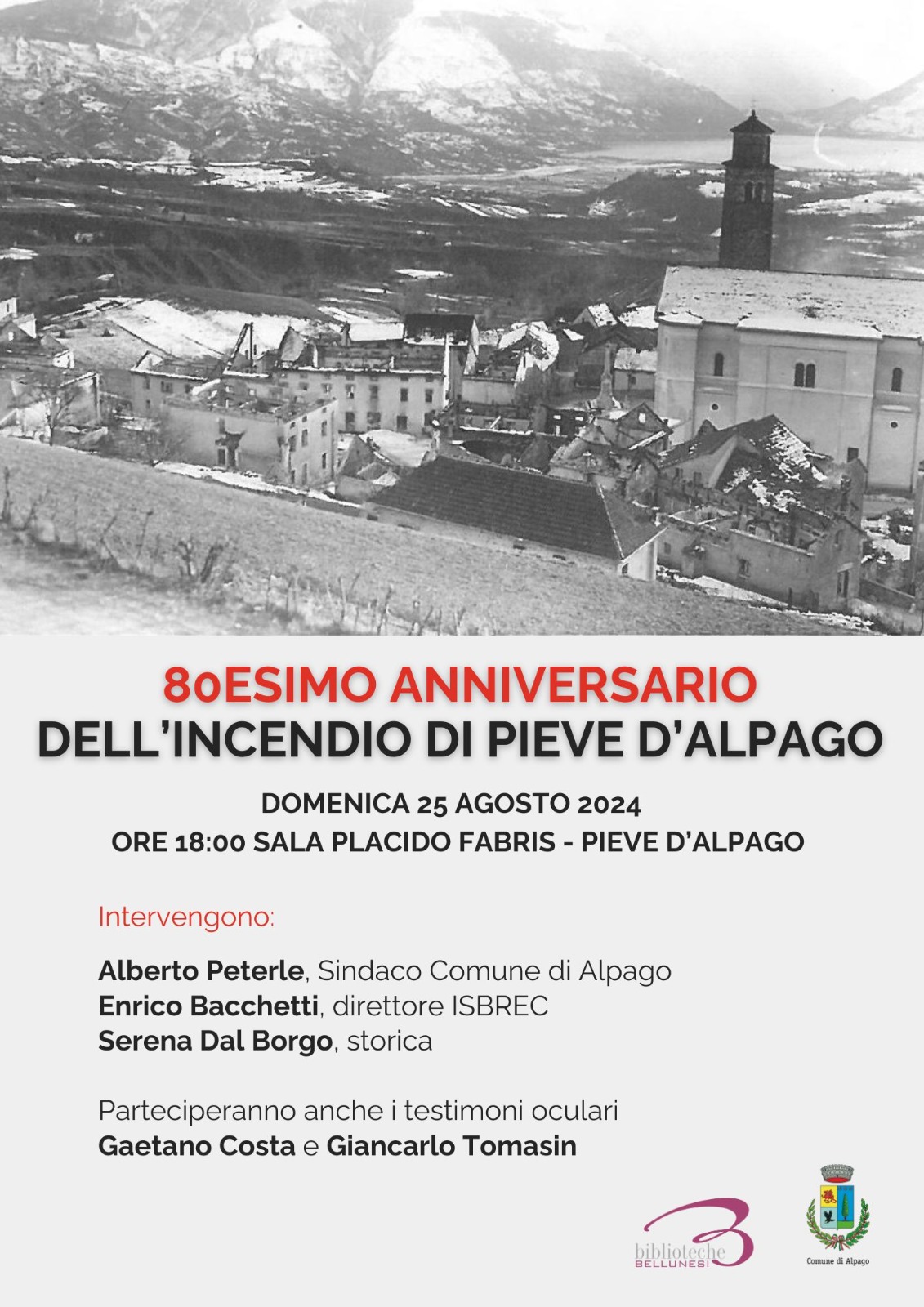 L’incontro si terrà domenica 25 agosto 2024 alle ore 18.00 presso la sala Placido Fabris di Pieve d’Alpago. Dopo i saluti di Alberto Peterle Sindaco di Alpago e Enrico Bacchetti, Direttore dell’Isbrec, interverrà Serena Dal Borgo, ricercatrice storica e socia dell’Isbrec. All’appuntamento prendereanno parte Gaetano Costa e Giancarlo Tomasin, testimoni oculari del tragico episodio.