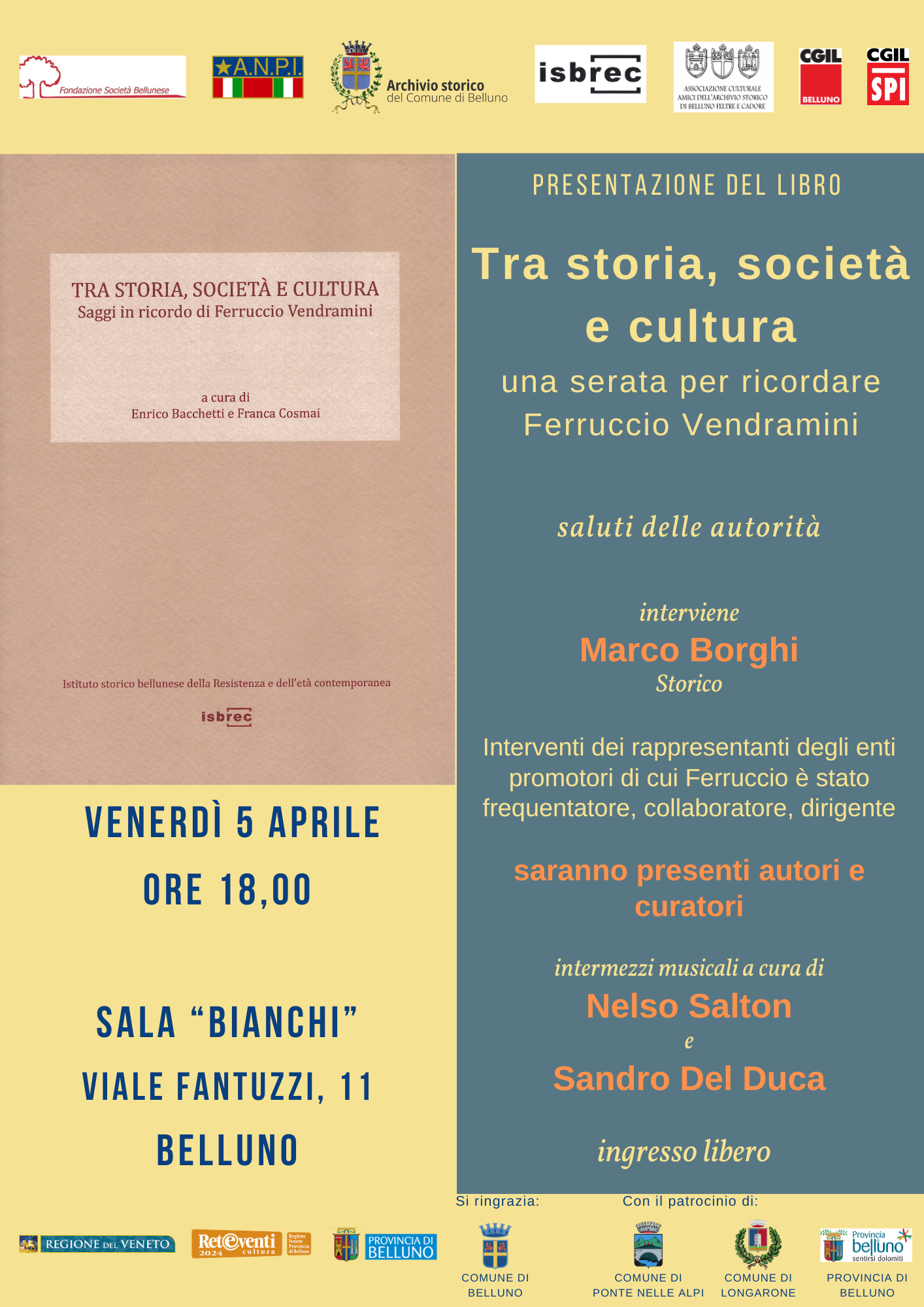 Nel corso dell’incontro verrà presentato il volume Tra storia, società e cultura. Saggi in ricordo di Ferruccio Vendramini, curato da Enrico Bacchetti e Franca Cosmai che raccoglie 25 saggi di altrettanti storici e studiosi che ebbero modo di condividere percorsi di ricerca con Ferruccio.