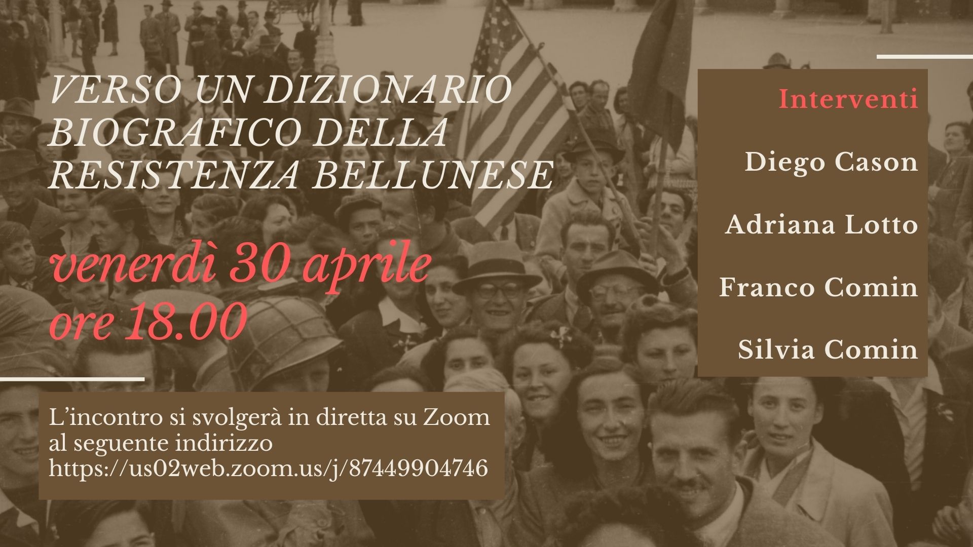Nel quadro della Festa della Liberazione 2021, Isbrec, Comune di Belluno e Anpi di Belluno organizzano l’incontro Verso un dizionario biografico della Resistenza bellunese. L’appuntamento intende presentare i risultati di una ricerca condotta da Franco e Silvia Comin nel fondo documentario Ricompart (Riconoscimento partigiani) presso l’Archivio centrale dello Stato a Roma. La lunga ricerca ha permesso di censire circa 5000 persone che lo Stato italiano riconobbe dopo in conflitto come partecipanti alla guerra di Liberazione dal nazi-fascismo.
